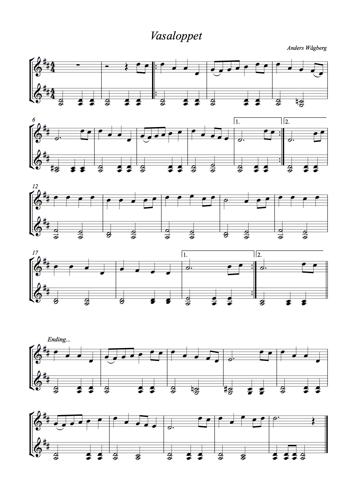 Played as written. Vasaloppet is in our key on soundcloud | |